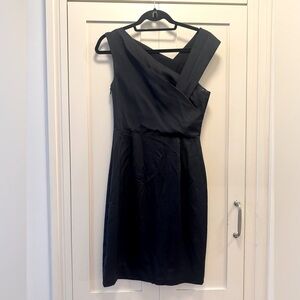 The asymmetric neckline and pleated bodice details on the night navy Tania cocktail dress make a sophisticated statement, adding interest to a classic pencil-cut outline. Wear with mid-heel slingbacks and a simple clutch for old-school allure.