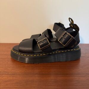 We've reinvented our headlining Gryphon sandal for the new season. Now standing on a high-rise Quad sole, the Gryphon Quad is manufactured from soft Pisa leather with rugged brass hardware. Welted, well-engineered and packed with Docs DNA — the sandals are finished with yellow welt stitching and an AirWair heel loop.