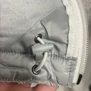 Jacket is an excellent condition! Light gray/silver color. Full zip closure. Two zip pockets on the front. Two pockets on the inside. Can be cinched on the inside of the waist. size Medium.