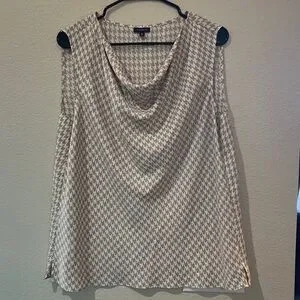 Talbots Beige Houndstooth Sleeveless Blouse