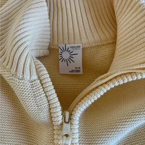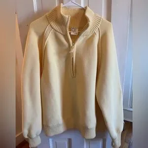 Offline by Aerie Quarter zip Sweater, in the most gorgeous light yellow color! It is a thicker sweater with thumb holes!