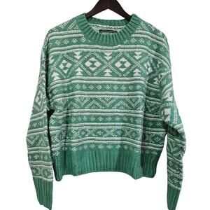 American Eagle Fair Isle Nordic Knit Sweater Green and White Size L