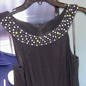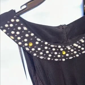 Jessica Howard Evening- Size 10- Women’s Chic black dress with a studded neckline with Pearls & Sequins. Features silver and gold accents. (Two little tiny diamonds missing but you can’t even tell!) But please see pictures! I looked at the top over and over and you can’t even tell! I love this dress so much, I’m just being honest! It looks great!