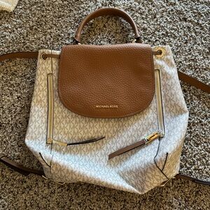 1 suitcase, 1 large purse, 1 small crossbody purse, 1 backpack, 1 crossbody water bottle holder, 2 card holders (1 crossbody, 1 keychain).