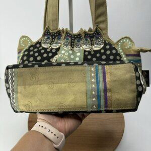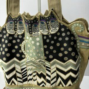 Laurel Burch 3 cat Canvas Tote shoulder Bag tan black white vintage 1990's Women