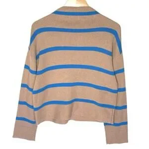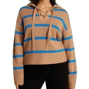 NWT EVERLANE Women’s Camel and Blue Striped Lace Up Sweater Small