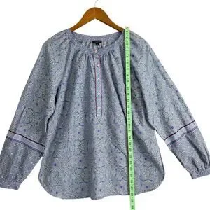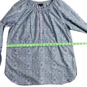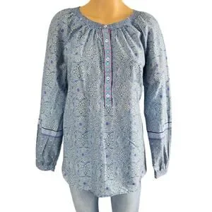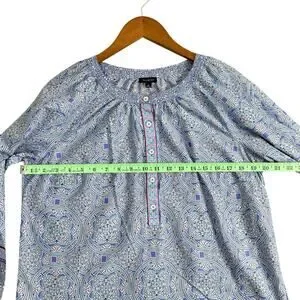 Talbots Popover Top Blue Kaleidoscope Pattern Preppy Boho Women’s Size /M