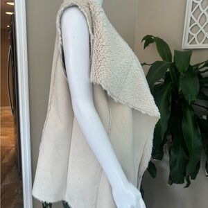 Stylish cream faux suede vest with a cozy design. Perfect for layering.