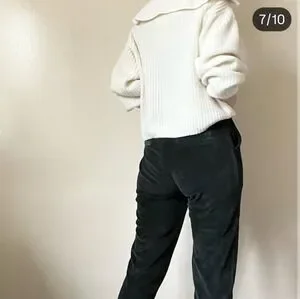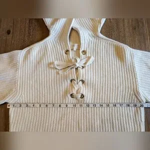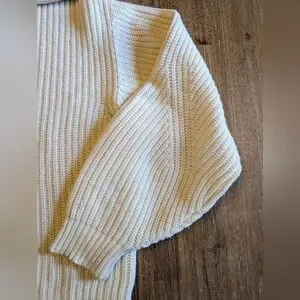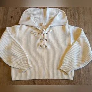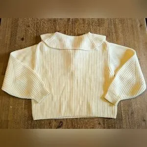 SEZANE Peter Laced Merino Blend Ribbed Flip Collar Jumper in Ecru Size S