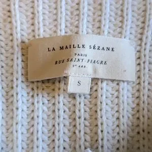 SEZANE Peter Laced Merino Blend Laced Flip Collar Jumper in Ecru Size S.