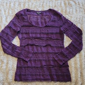 💜 Express Purple Lace Long Sleeve Top Sz Large