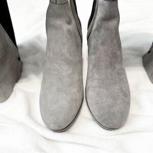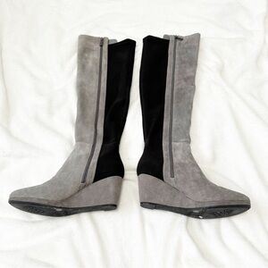 Vince Camuto Alexila knee high wedge boots. Grey suede stretch sides size 8.5