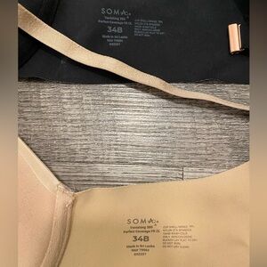 Like new Soma Bras 34B. Vanishing 360 perfect coverage front closure. Adjustable straps. Black, nude, beige pink, warm gray.
