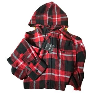 Aeropostale Red Black Plaid Hooded Flannel Shirt Men's XL Button Up Casual NWT