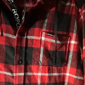 Keywords: Aeropostale, Men's Flannel Shirt, Red Black Plaid, Hooded Flannel, Button Up Shirt, Casual Shirt, Outdoor Apparel, Layering Piece, Comfortable Shirt, Plaid Shirt, XL Shirt, Menswear, Everyday Wear