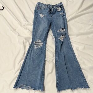 American Eagle Outfitters Light Blue Distressed Flare Jeans