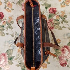 Dooney & Bourke Charleston Shopper Tote Black and Tan Leather Snake Print