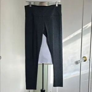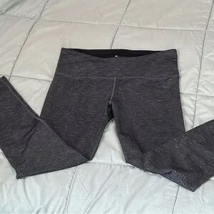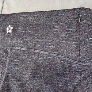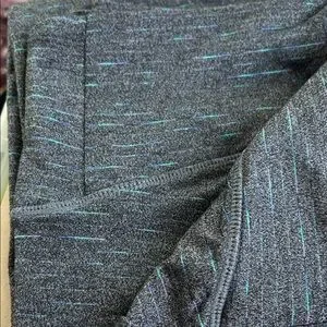 Dark grey with thin lines of color in turquoise, blue & purple Comfortable and stylish leggings. Perfect for workouts or casual wear. Stretchy fabric for a snug fit.