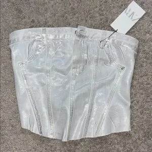 Elegant silver corset with sleek zipper accents. Ideal for evening wear. Or for a casual day outfit