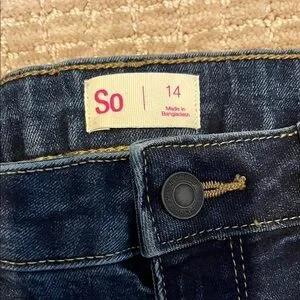Chic dark blue skinny jeans by SO. Sleek and versatile design. Ideal for casual wear. Includes adjustable waist straps to allow a perfect fit. These jeans have a 28 inch inseam.