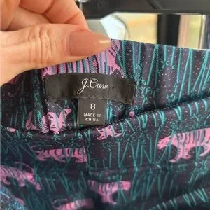 Bold silk animal wide legs. J. Crew. Features pink and green tigers. Perfect for a stylish look.