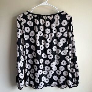 LOFT | Black & Cream Floral Long Sleeve Women's Blouse Size MP