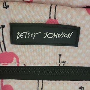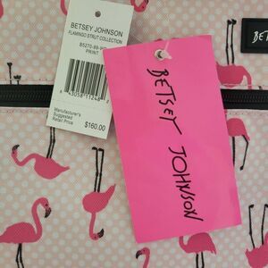 $160 LARGE NEW BETSEY JOHNSON PINK FLAMINGO CARRYON ROLLING TRAVEL BAG BLACK NWT