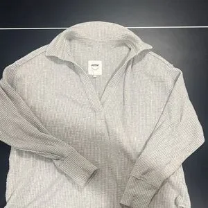 Soft ribbed sweater by Aerie. Features a fold-over collar and long sleeves.