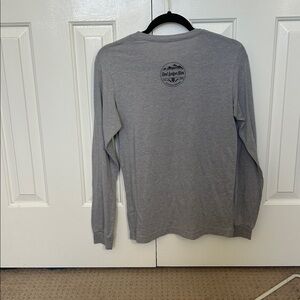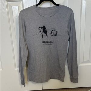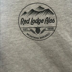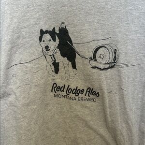 Grey Red Lodge Ale long sleeved t-shirt with black graphic design of a sled dog pulling a keg and the words “Red Lodge Ales Montana Brewed” underneath. The back has the red lodge ale logo. Worn a few times, in good condition. One Size, no tag specifying materials.