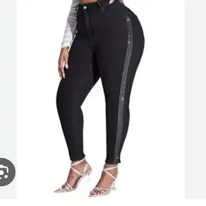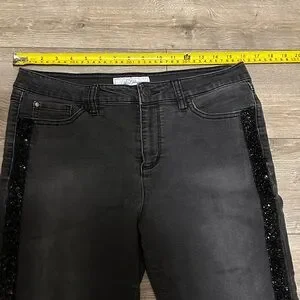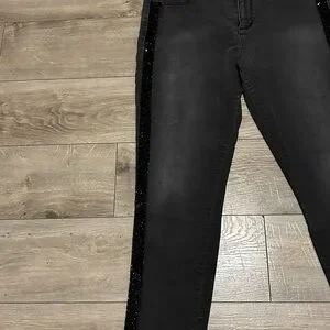 Chic black jeans with sequin side trim. Ideal for adding sparkle to any outfit. They are in EUC, only worn a few times. There is stretch to the fabric so no stress on the fit. They are comfortable and appropriate for all occasions. The zipper and button on fully functional. Feel free to ask questions and make offers. No offer offends me and most are accepted. Every purchase comes with free mystery gift ๐ฆ๐๐๏ธ๐๐!!