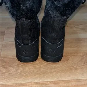 Stay warm and stylish with these black fur-lined snow boots. Perfect for cold weather, these boots offer comfort and elegance.