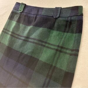 Talbots Wool Blend Plaid Mini Skirt Green Navy Black Watch Tartan Sz 10 Preppy