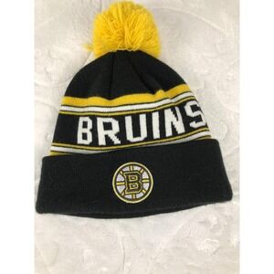 Boston Bruins Hat Beanie Youth Black Yellow NHL Hockey Pom Cuff Knit Winter