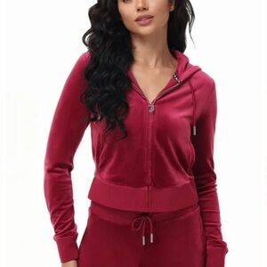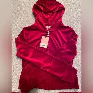 NWT Juicy Couture “Coco Red” velour jumpsuit. Features zip-up hoodie and pants. Comfortable and trendy. size Large