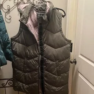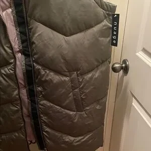 Chic khaki puffer vest. Features a cozy lining. Ideal for layering.