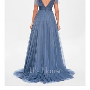 JJ’s House A-line V-Neck Sweep Train Tulle Prom Dresses With Bow #301871 Sz. 16