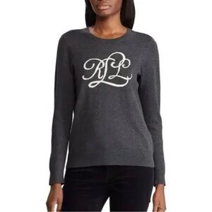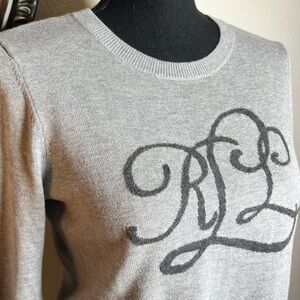 Ralph Lauren Women’s Heather Gray Monogram Crewneck Lightweight Sweater Jumper