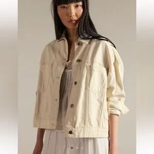 Take your denim jacket game to the next level with this so cool version featuring dropped shoulders for shape and defined pleating at back for an added special, swingy touch.