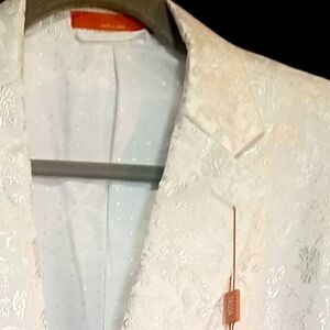 🎁 NWT Macy's Tallia Shiny White Men's Floral Sportcoat Blazer Dinner Jacket 46R