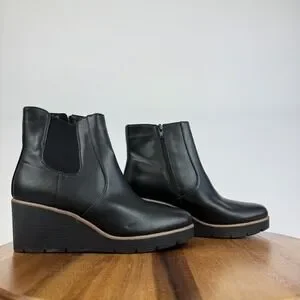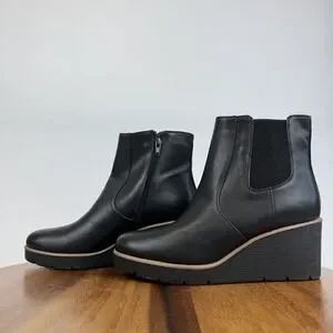 New Womens Soul Naturalizer Apollo Black Leather Chelsea Wedge Boots Size 7.5 M