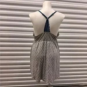 Comfortable gray sleepwear with playful blue polka dots. Ideal for relaxing evenings.