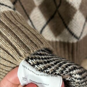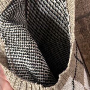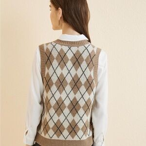 Timeless argyle sweater vest with a brown and white pattern. Ideal for layering.
