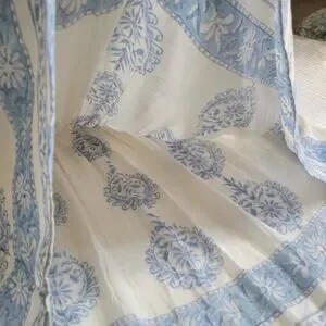 White with blue floral details