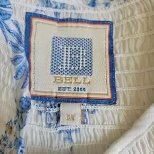 BELL Alicia Bell Sz M Blue White Top Boho Blouse Floral Cotton Silk Sequin Flowy