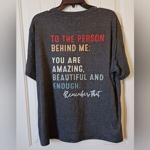 NWOT "you matter." on front, "to the person behind me . . ." on back, gray t-shirt in new condition. Unbranded, see pics for details and measurements. Size 2XL. (127)