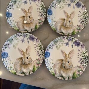 Elegant plates- set of four- with a rabbit and floral accents. Ideal for nature-themed dining.