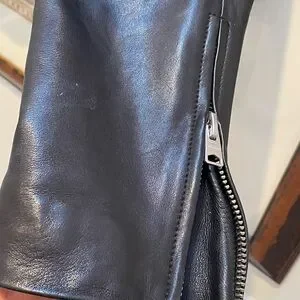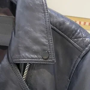 Chic black leather jacket . Classic biker style. Perfect for edgy looks.