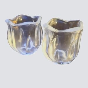 Vintage Tulip Flower Clear Glass Decorative Votive Candle Holders Set of 2