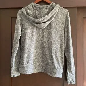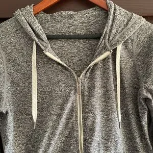 Comfortable gray hoodie. Full zip closure. Soft fabric. Ideal for casual wear.