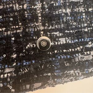 This elegant black tweed bag is perfect for any occasion. Its chic design features a stylish brooch detail, adding a touch of sophistication to your outfit. Ideal for both casual and formal events.